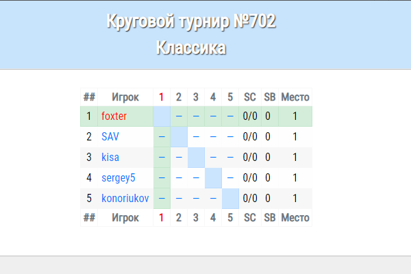 09:07-foxter:запустил на 32 участника.... и кому-то повезло с первым туром...))) 08:42-foxter:запишись обратно, я что-нить придумаю... этот с 32 запушу... 08:38-EvgenyL1406:afhf с ноября нет... я выписался.. 08:34-EvgenyL1406:Anatoli тоже редко виден в последнее время... 08:33-EvgenyL1406:WhiteBishop с октября нет на сайте... 08:32-EvgenyL1406:messii не играет... 08:31-foxter:Сашка, нужна атака твоих...))) семерых насчитаешь?)) 08:30-foxter:да, вижу, спасибо! 08:30-EvgenyL1406:Тоже... запустились оба... 08:29-foxter:блин, а в этом Чемпионат портала «Лето - 25» 25 на 16 мест... жесть..