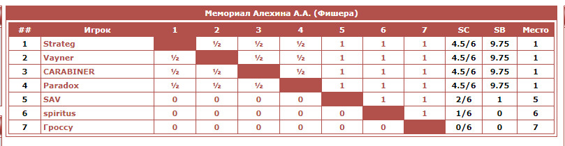 7. Турнир начинается для всех в один день с целью не затягивания партий (вот здесь проблема как запустить всё одновременно)