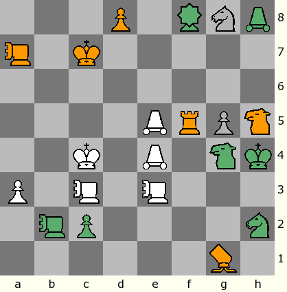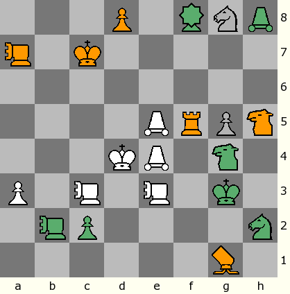 Да, тут оказывается, мат уже следующим ходом Казака, если Казак согласится по примеру Чесса быть не матующим, а просто ход мне перекрыть... правда, в этом случае Чесс начинает первым брать фигуры... если Казак дождется, когда меня прямо заматует Чесс, то первый фигуры начнет брать он... такая вот экономика... :-)))