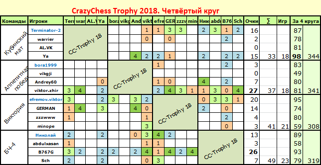 Может, командный кубок проведём? 1-я команда с 4-ой, 2-я - с 3-ей. Потом финал.
