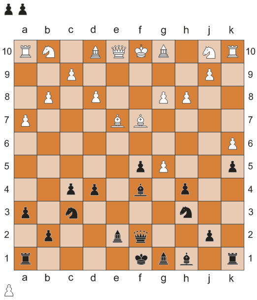 1. e2-e5 e9-e6 2. j1-h3 Kb10-c8