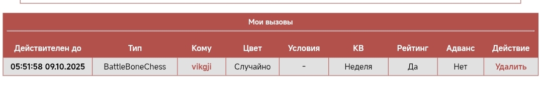 AL.VK - Николай играйте уже. Сроки создания(принятия)вызовов уже вышли...Я не в курсе,кто из вас должен отправить(принять)вызов(вызовы)После этого турнира командник надо до НГ сыграть.