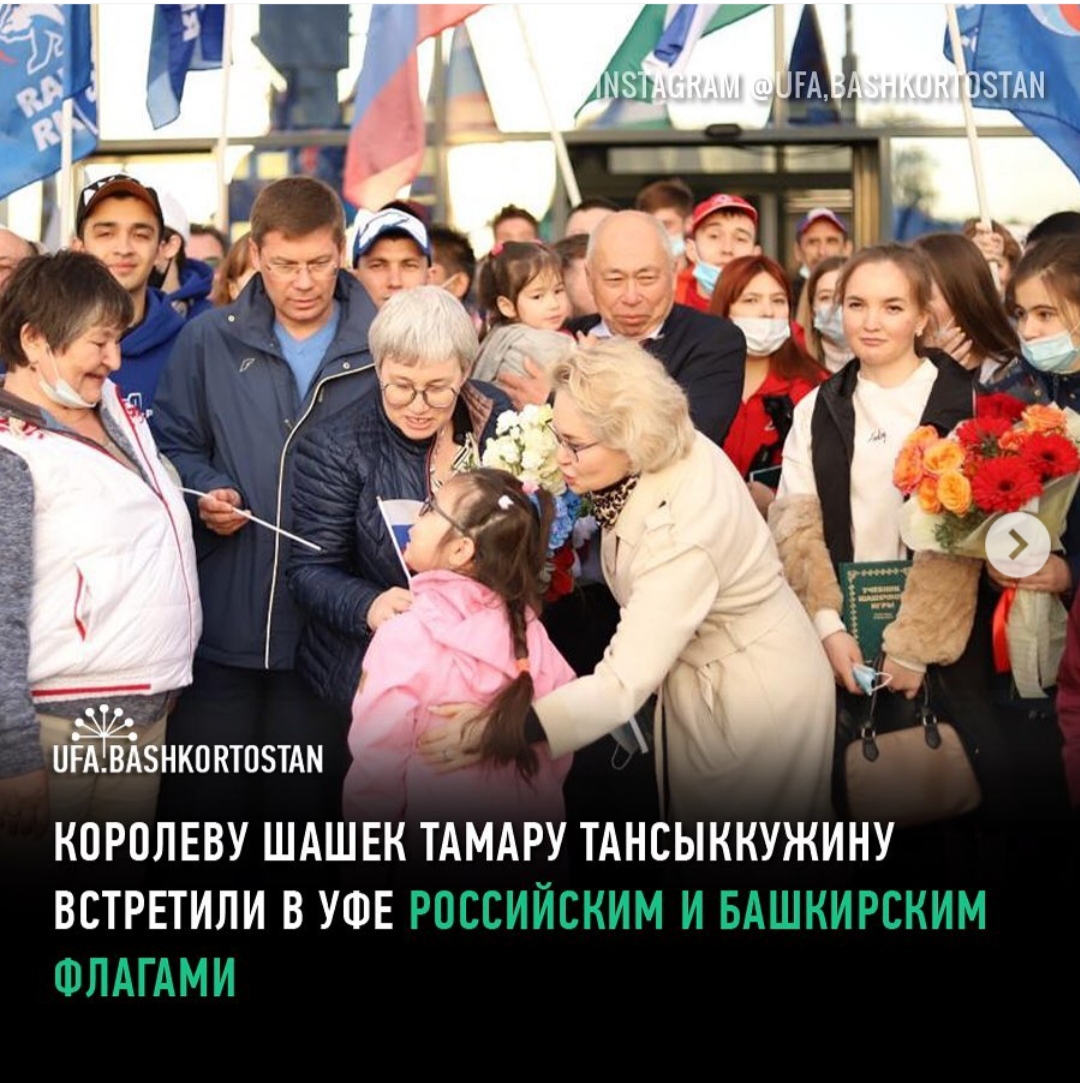 Королеву шашек Тамару Тансыккужину встретили в Уфе российским и башкирским флагами